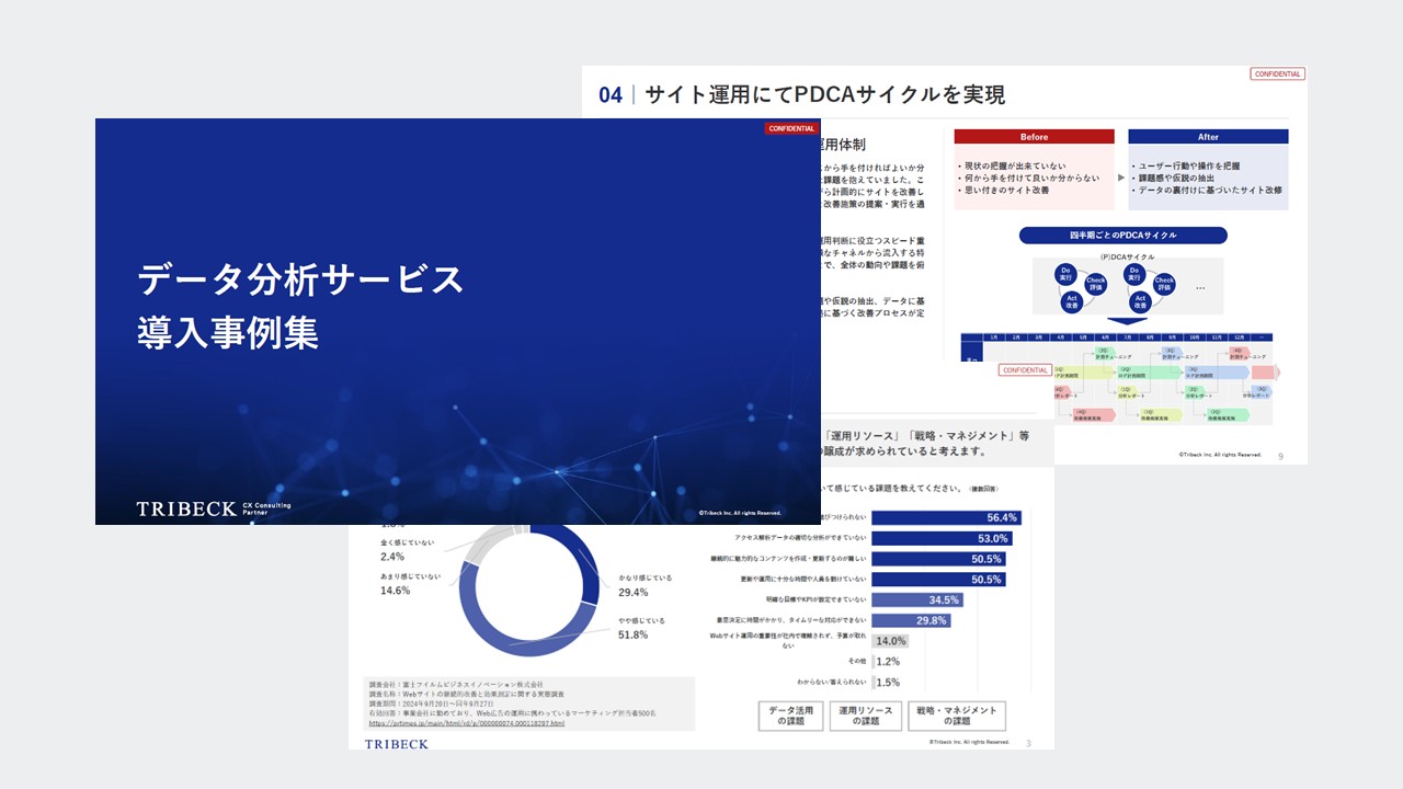 「データ分析サービス導入事例集」は、アクセスログなどのデータの分析・運用・可視化のような、各課題に応じた弊社の解決アプローチをご紹介しています。