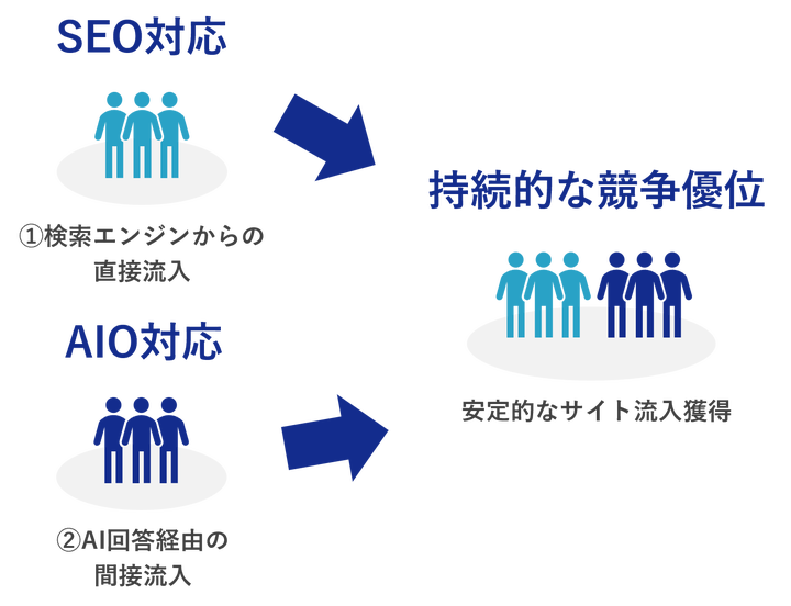 AIOは、決して従来のSEOを置き換えるものではありません。むしろ、SEOの延長線上にあると言えます。