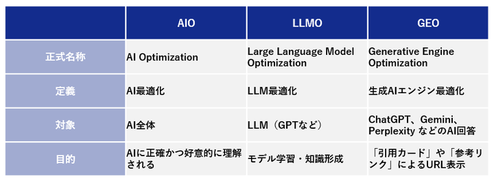 2.AIO・LLMO・GEOの違い