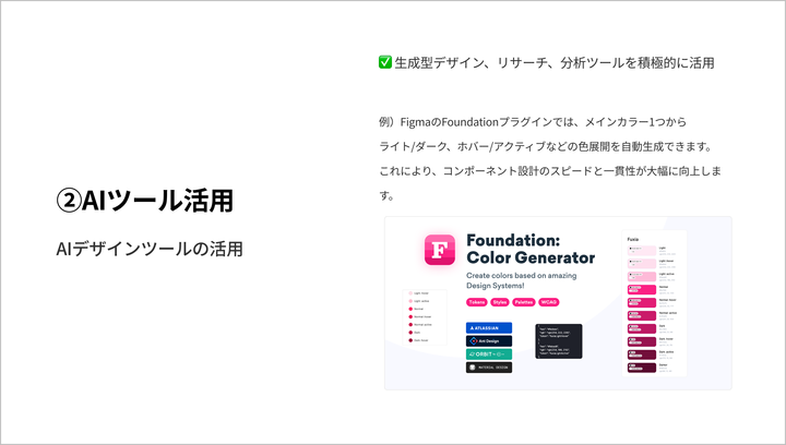 ・AIは概念だけでなく、すでに実務の中でも活用が進んでいます。ここでは、FigmaのAI機能を例に具体的な活用方法を紹介します。