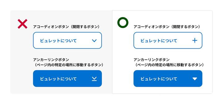 ユーザーが判別しづらく誤操作を招く恐れがあるため、異なる動作のビュレット同士の形状は、差別化する必要があります。