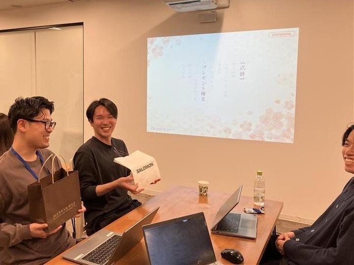 式の最後には、メンターの皆さんへ感謝の気持ちを込めて、プレゼントを贈呈しました。それぞれの贈り物には個性があり、相手のことを思いながら選んだことが伝わるものばかりでした。1年間の感謝を形にすることで、改めて「ありがとう」を伝える時間となりました。