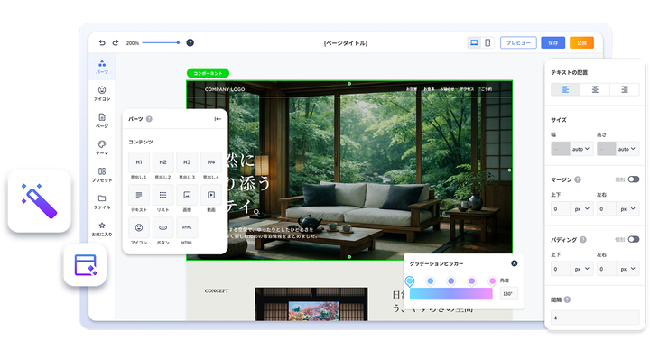 - AI生成とデザインエディタが1つに融合し、生成したページをそのまま自由に編集できます